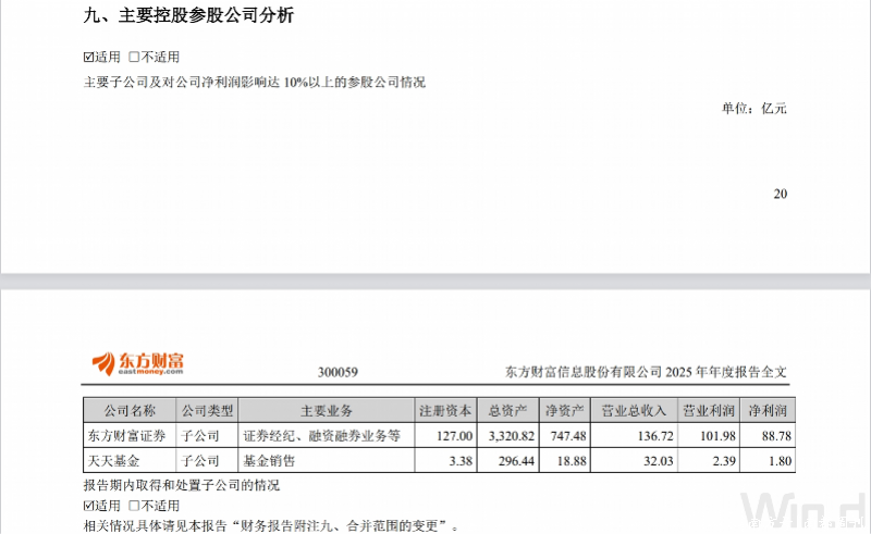 子公司方面,报告期内,东方财富证券营收为136.72亿元,净利润为88.78亿元。